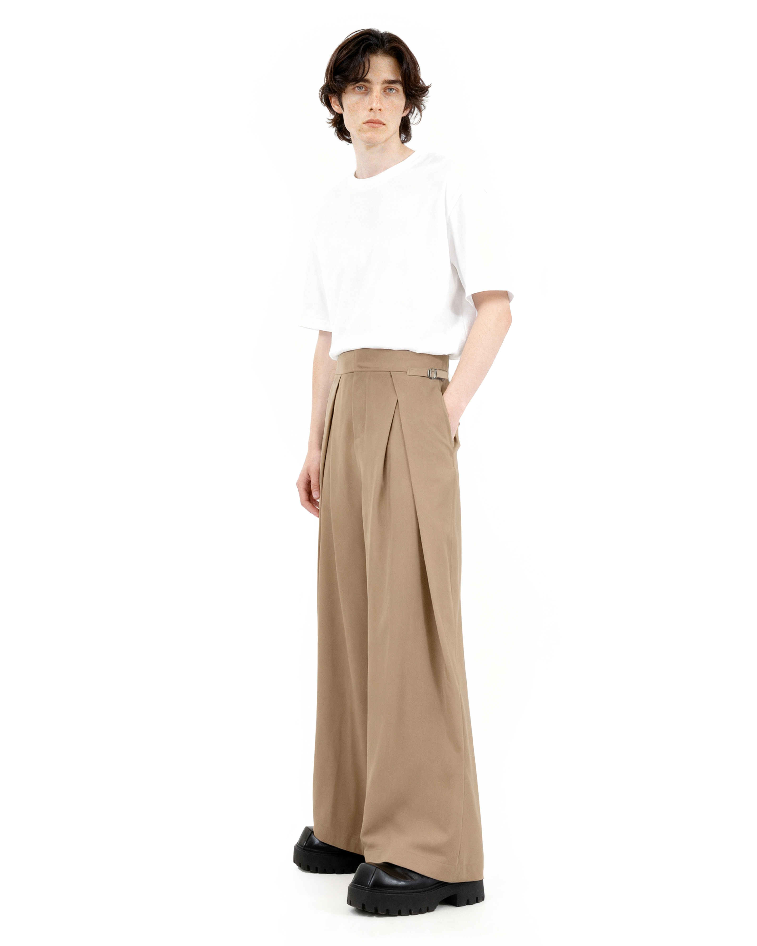 Wide Leg Pleated Palazzo Trousers with Belt Detail