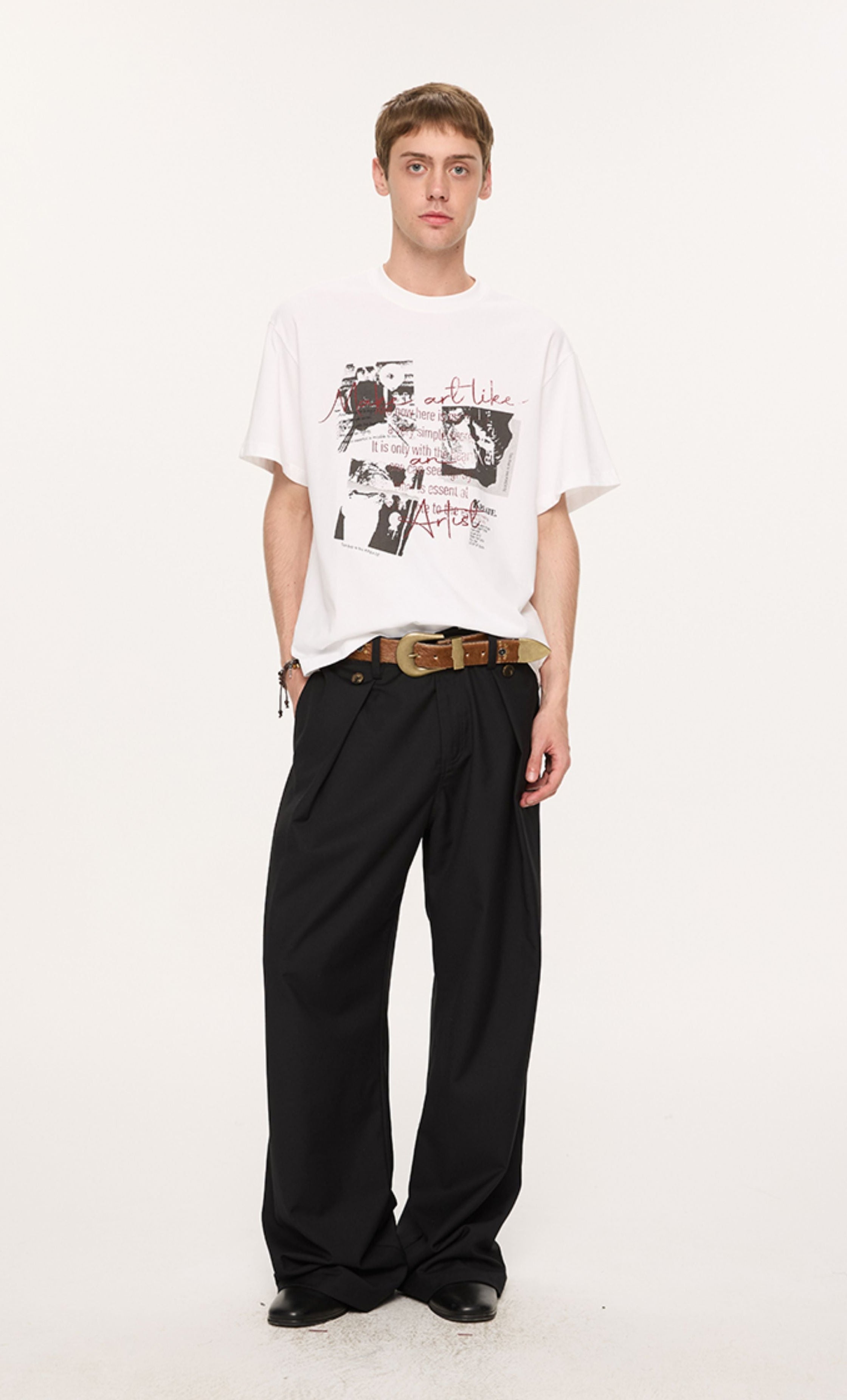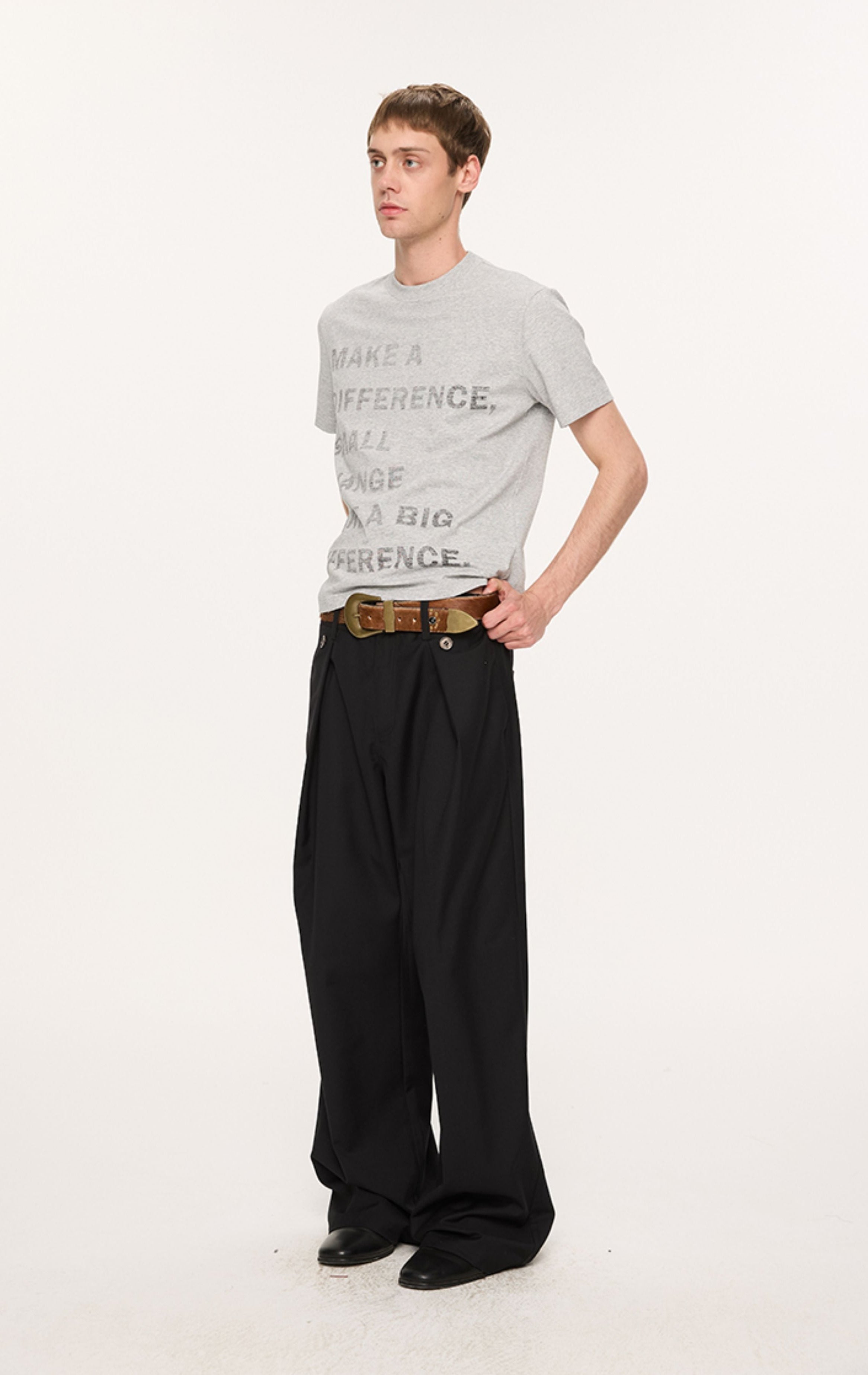 Designed for comfort without losing clean lines, they blend ease with intentional detail. Crafted from a smooth TR blend fabric, these trousers feature deconstructed overlays that button at the waist and fall over the sides, adding movement and new proportions to a classic look. The drape is soft but tailored, making it a versatile staple whether you're headed to work, out in the city, or layering up for a low-key night out.