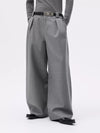 Made from a carefully balanced blend of polyester, rayon, cotton, linen, and spandex, the pants combine durability with a soft drape and natural stretch. The extra-wide fit is complemented by deep pleats and oversized belt loops, giving the trousers both structure and functionality. The grey tone enhances the fabric’s textured depth, making these pants easy to style while standing out on their own.