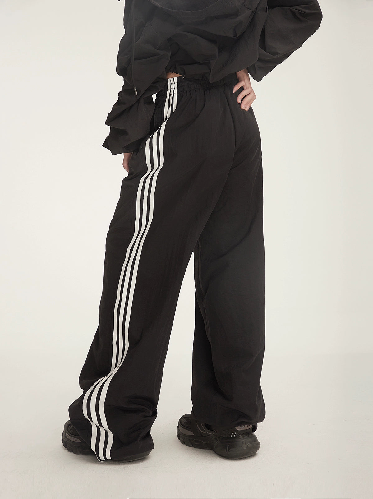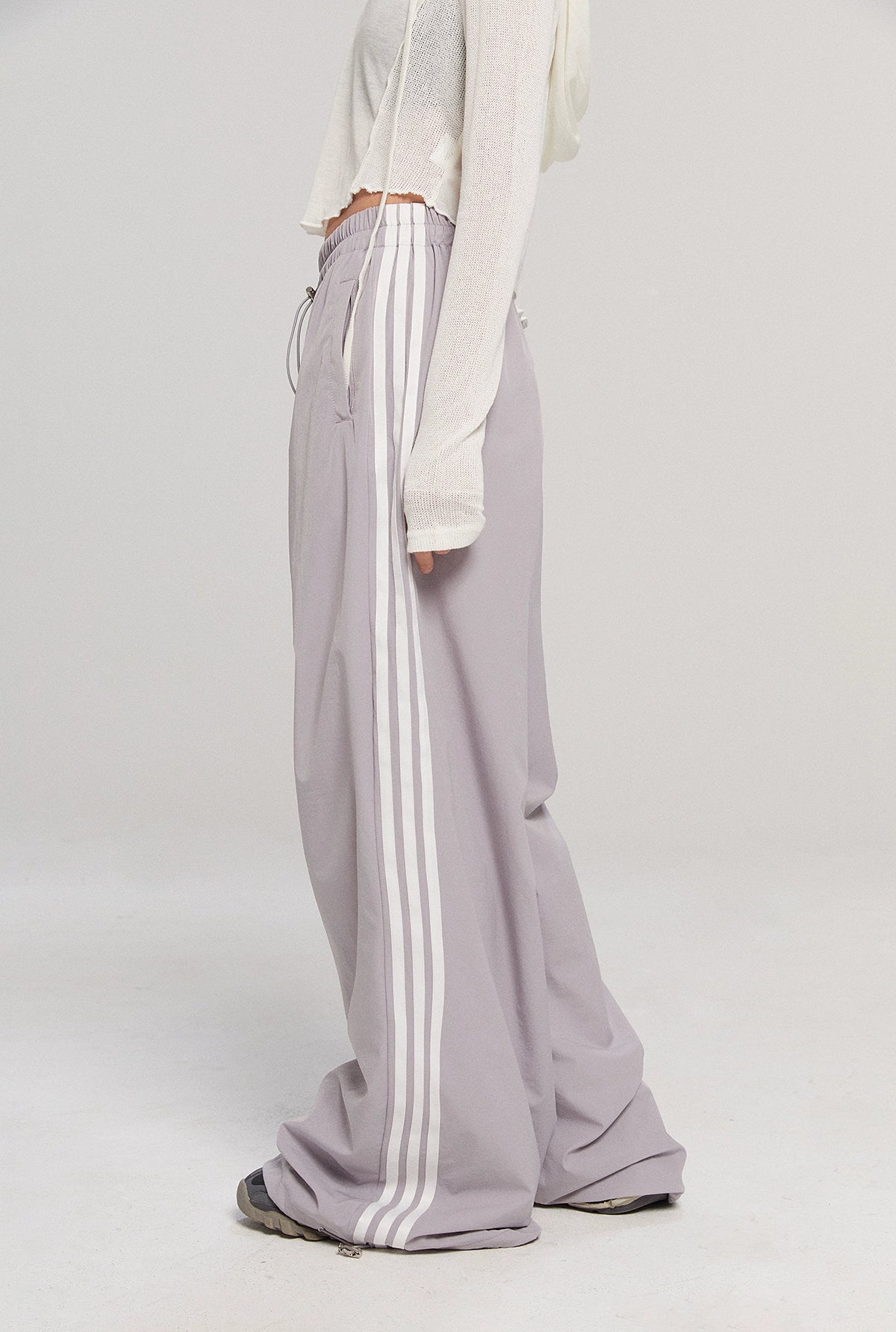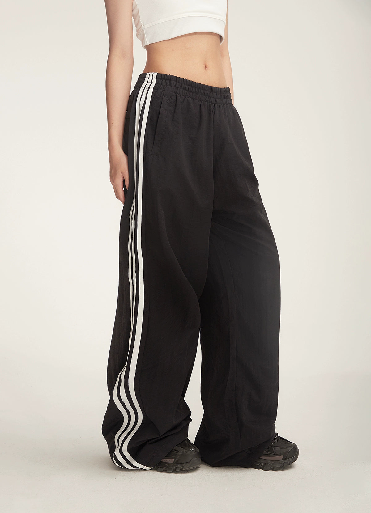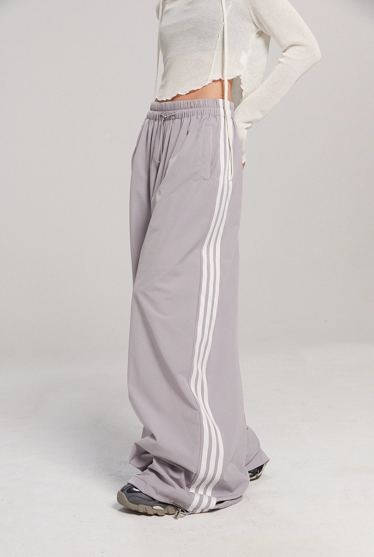 Wide-Leg Striped Track Pants with Drawstring Waist