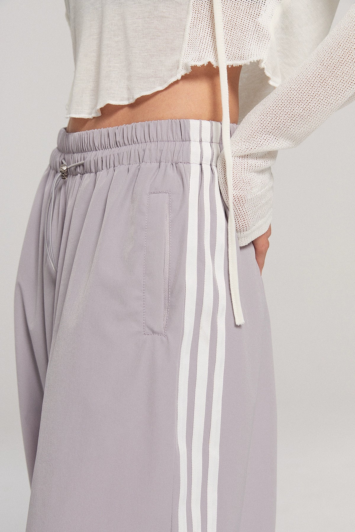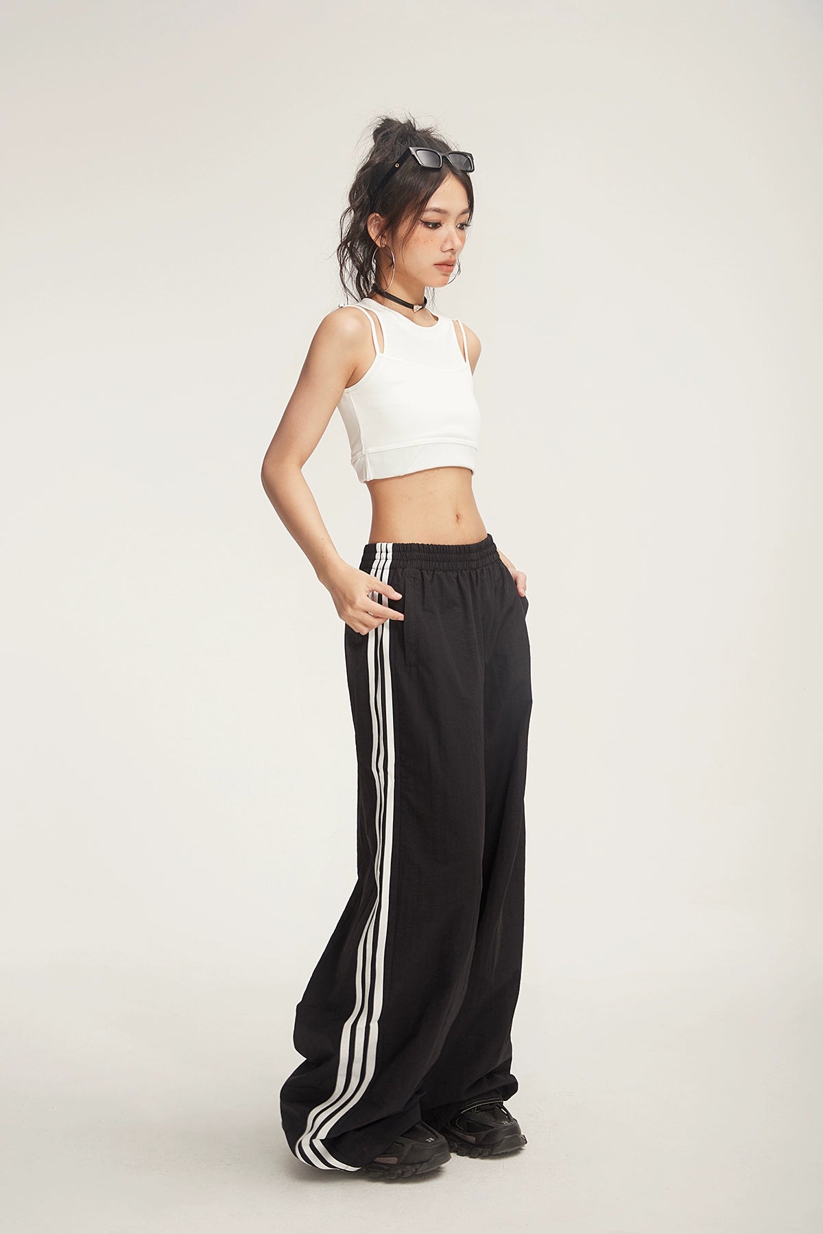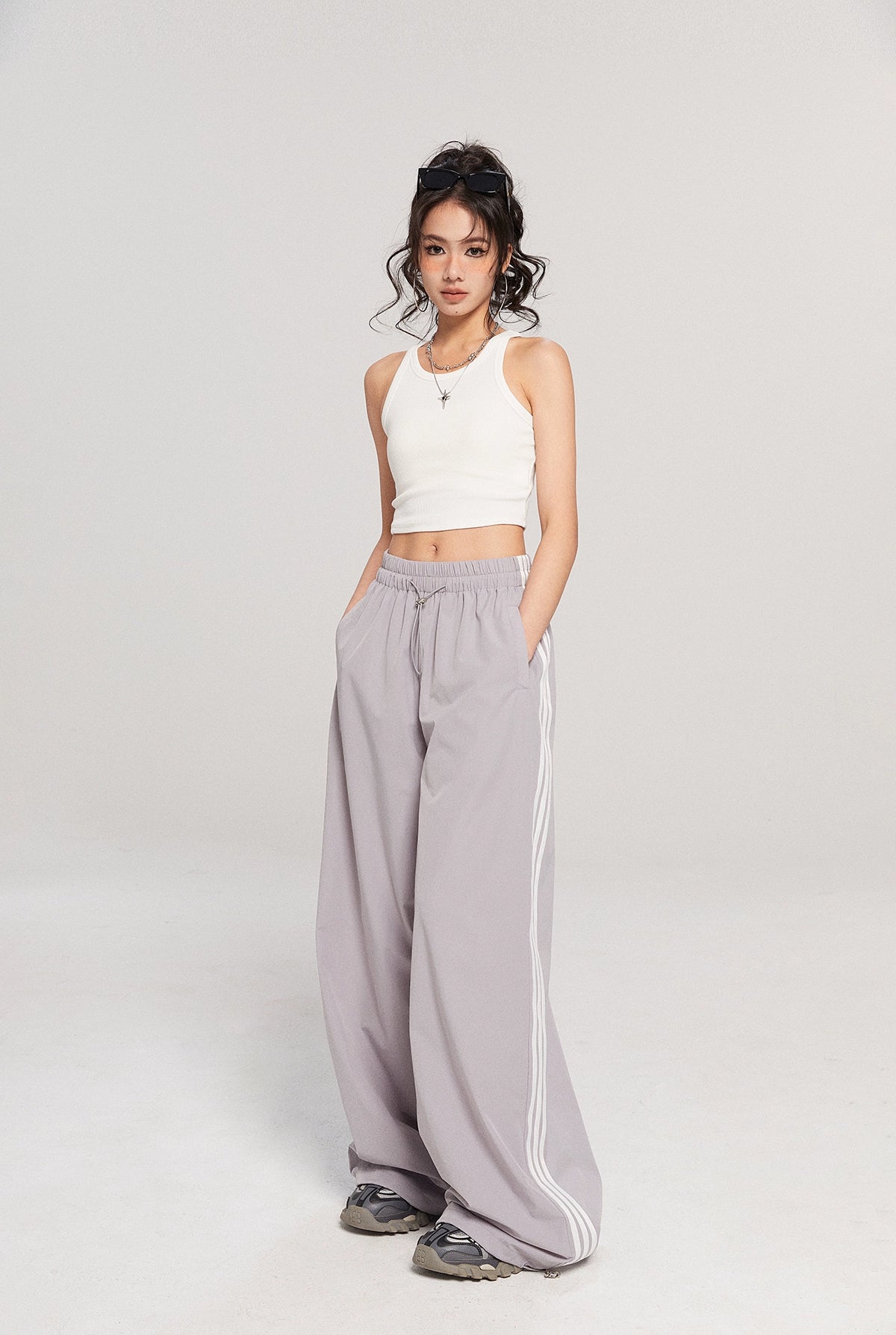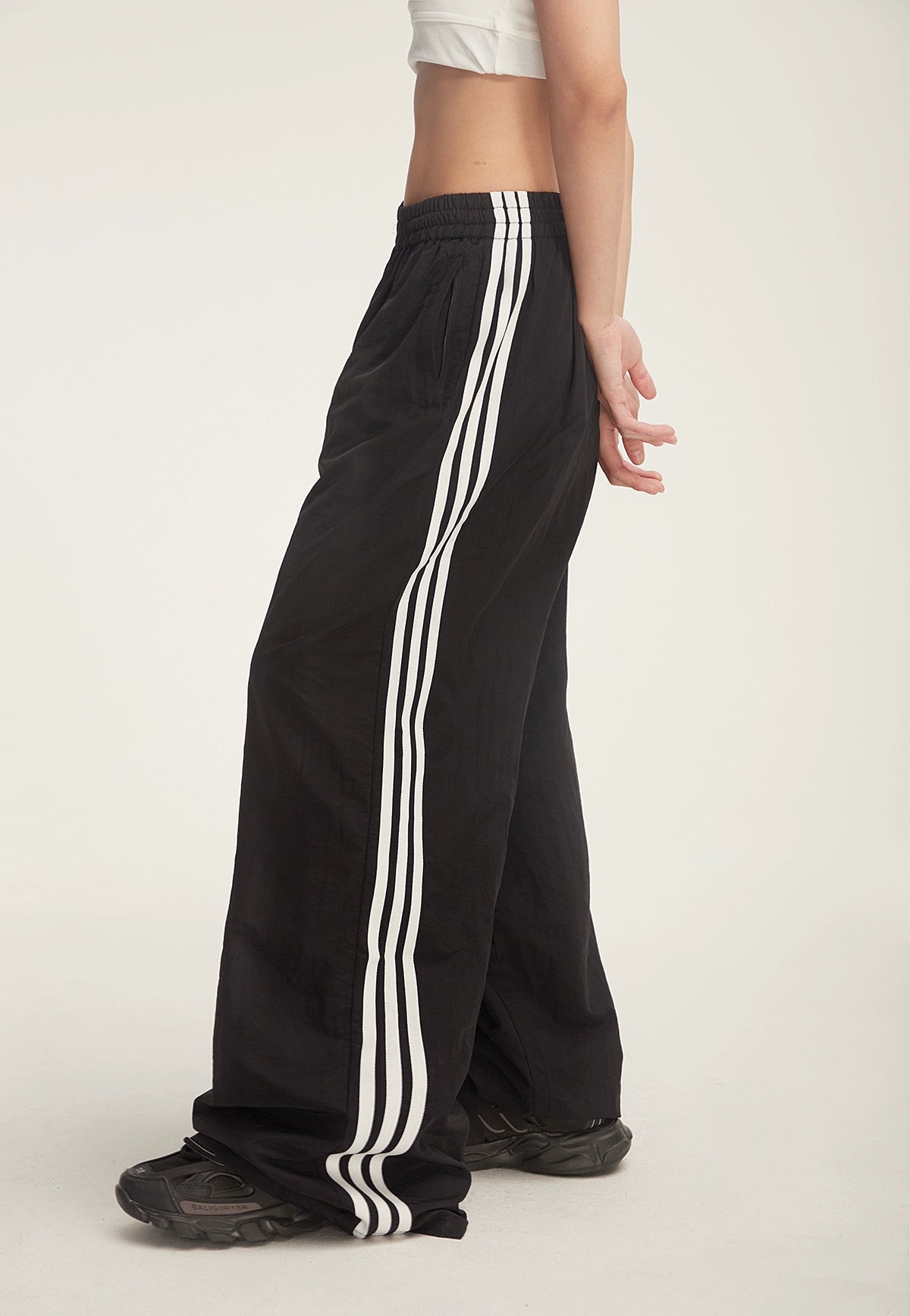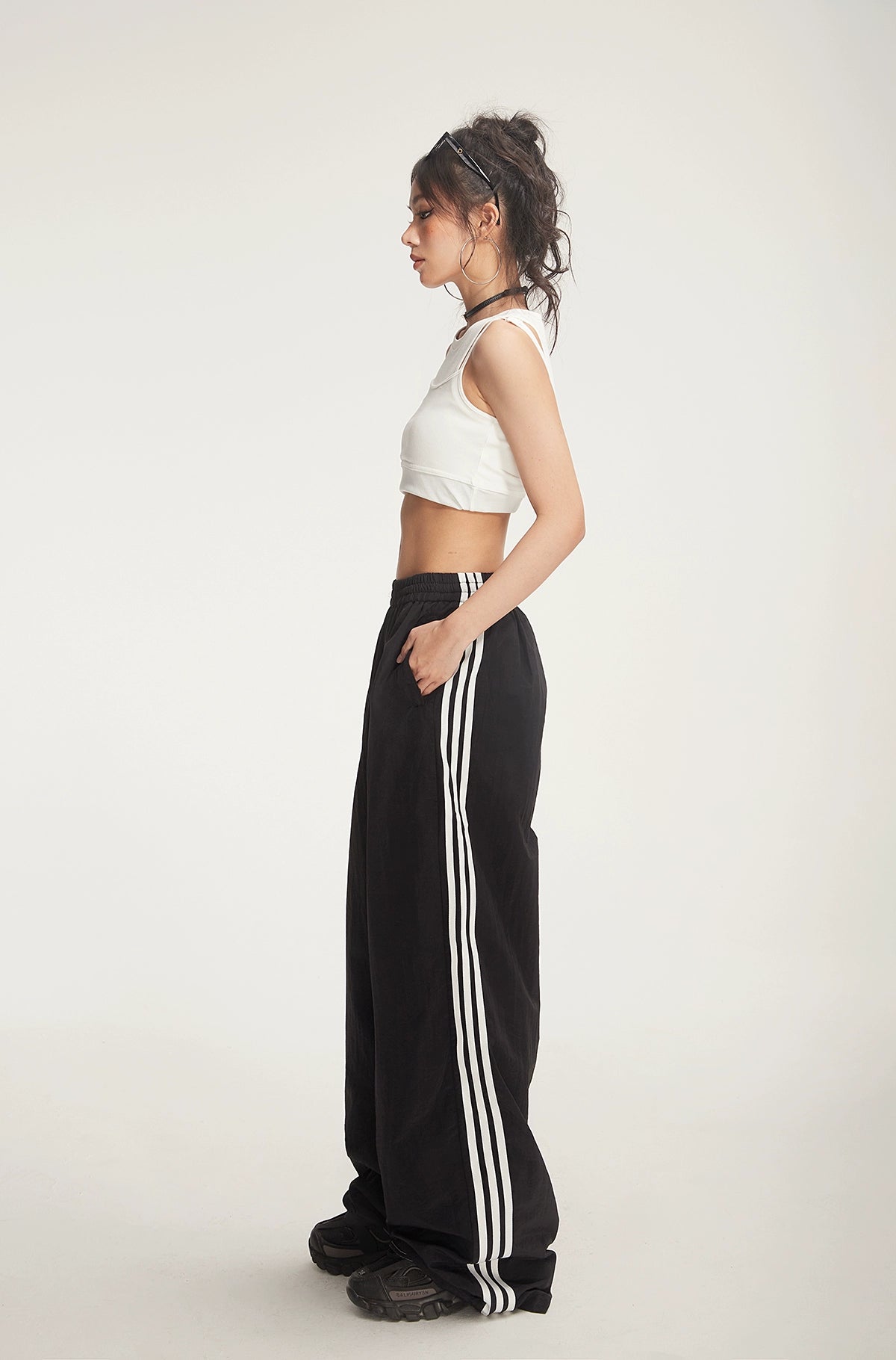 Wide-Leg Striped Track Pants with Drawstring Waist