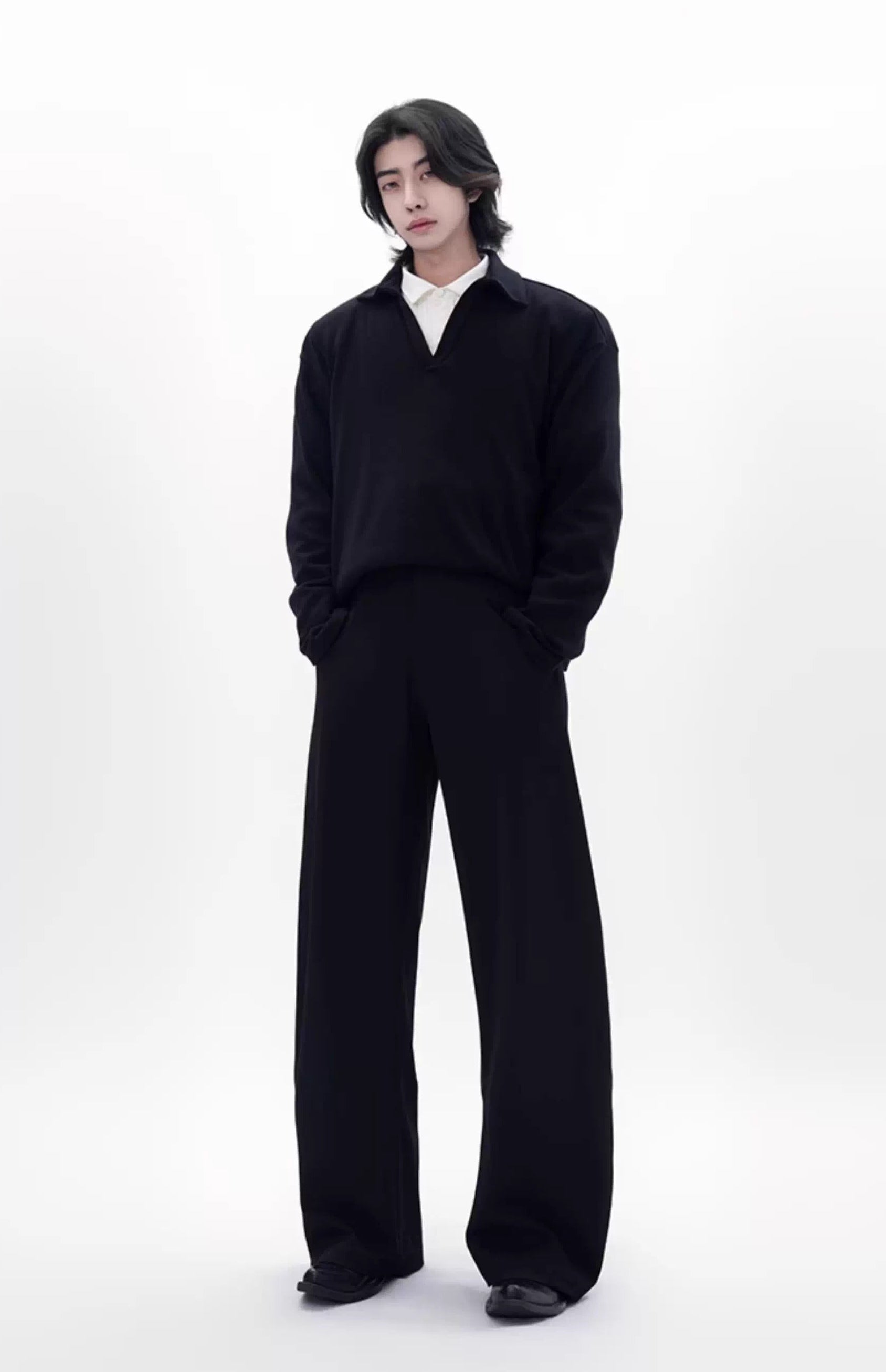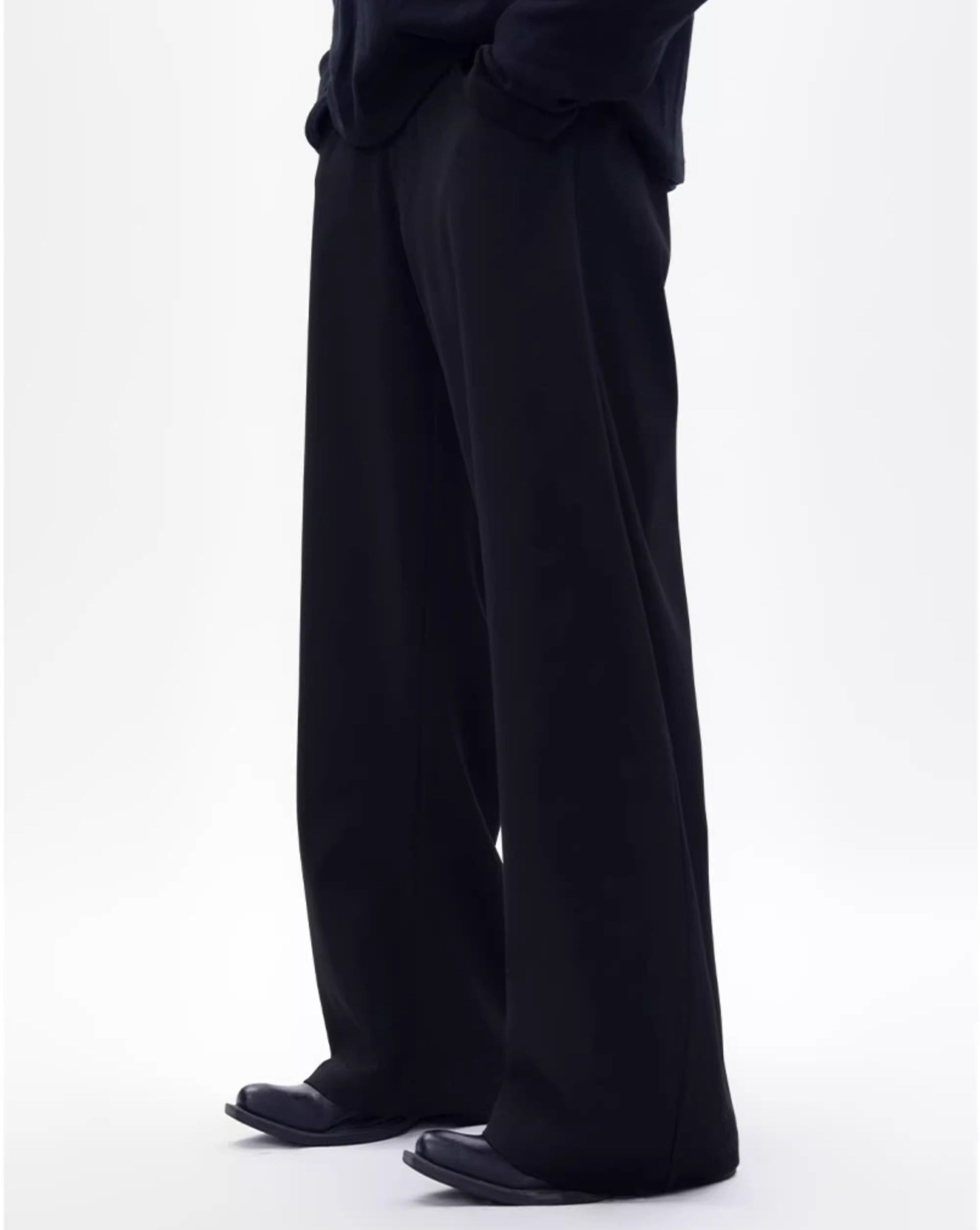 Designed in a smooth, solid black fabric blend with a subtle weight and slight stretch, these pants offer both shape and ease. A mid-rise waist and zip fly closure complement the relaxed leg for a silhouette that flows naturally without clinging. Whether you're dressing them down with a hoodie and sneakers or pairing with loafers and a sharp button-up, they adapt to whatever the day requires with a low-key confidence. It’s minimalism that doesn’t try too hard—grounded in quality and balance.