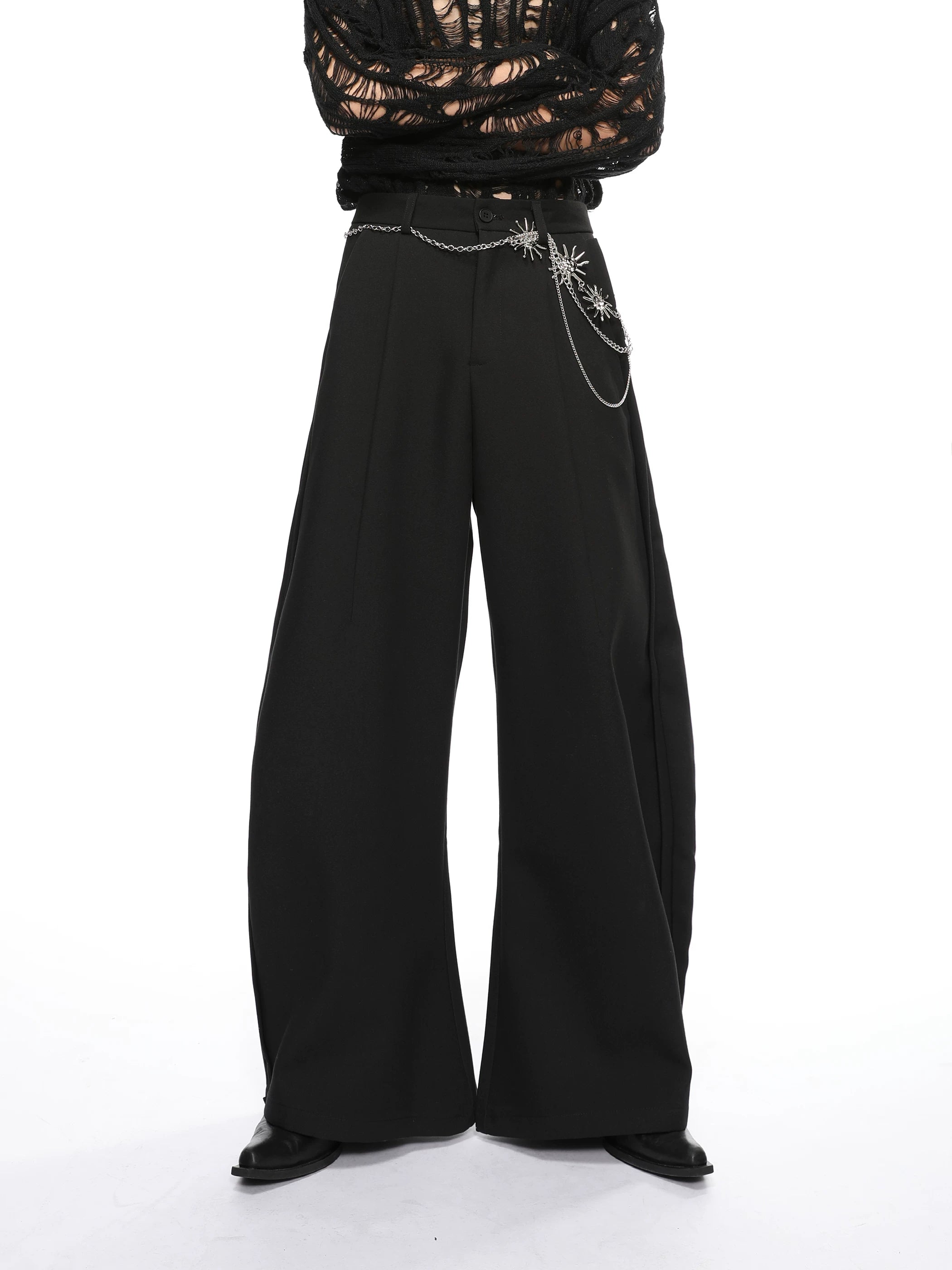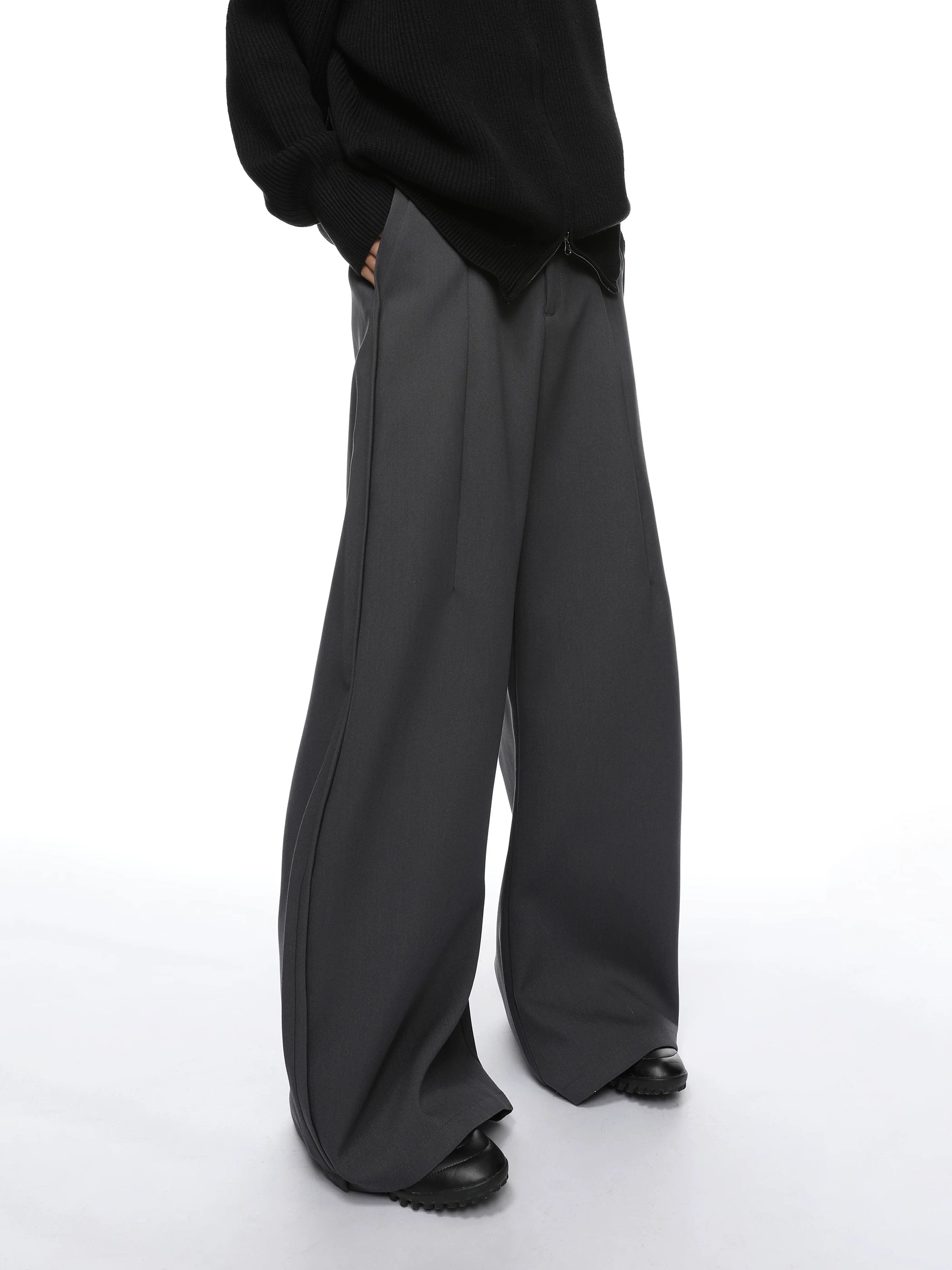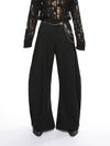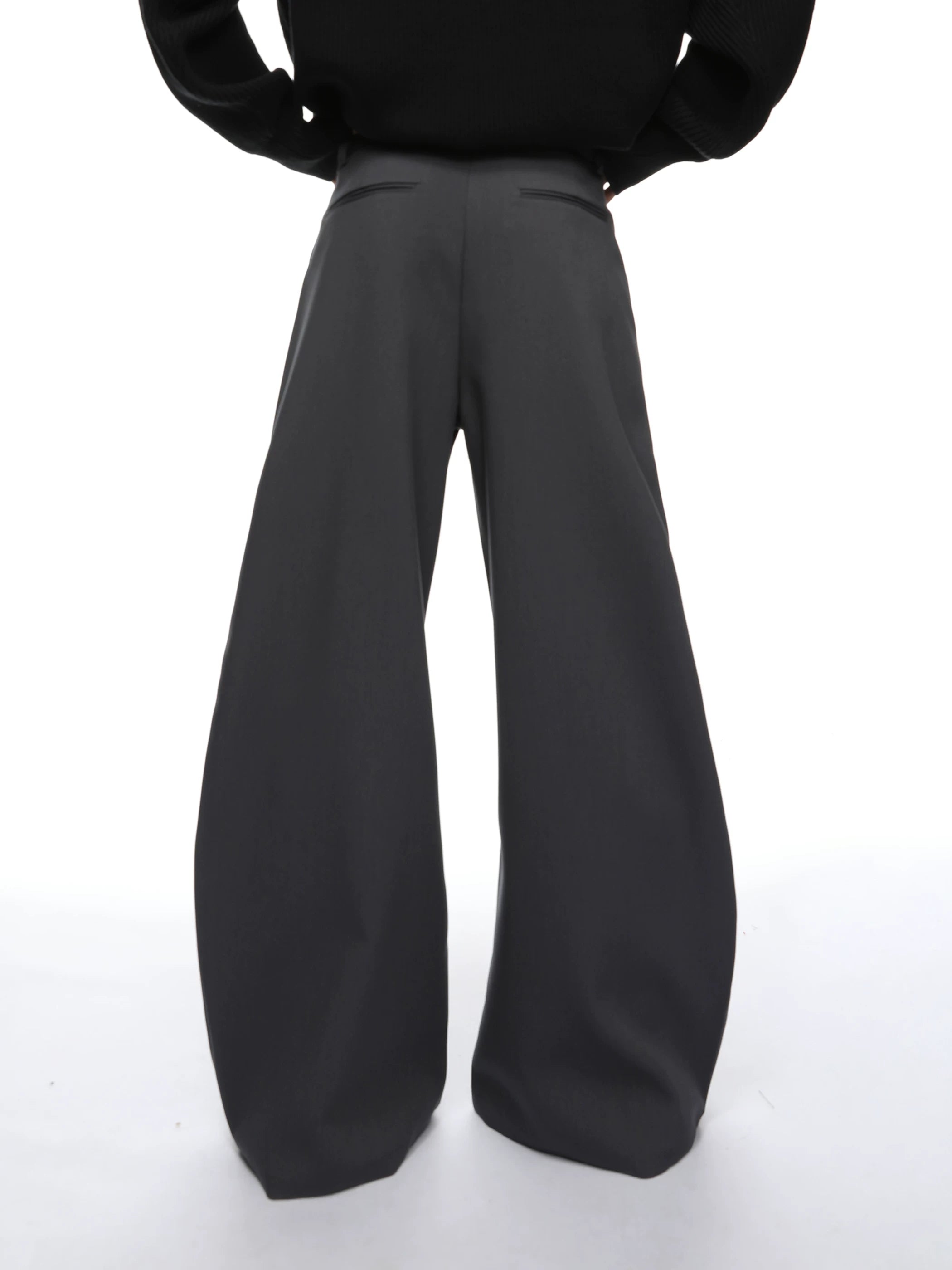 Wide Semi-Flare Barrel Leg Pleated Trousers