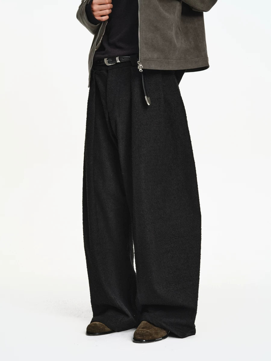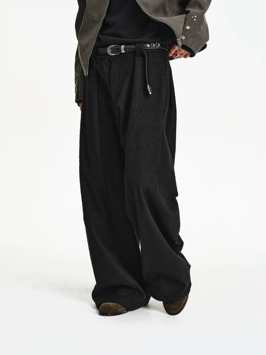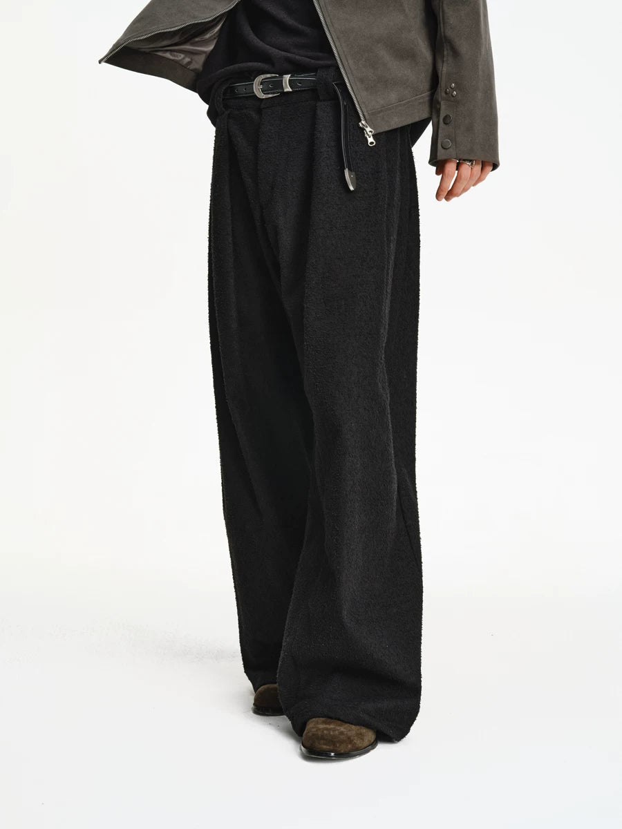 Woven-Texture Wide Leg Pleated Pants