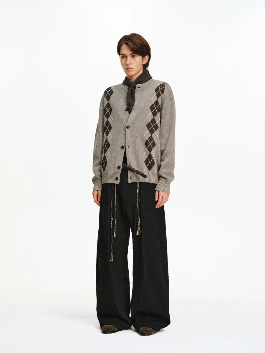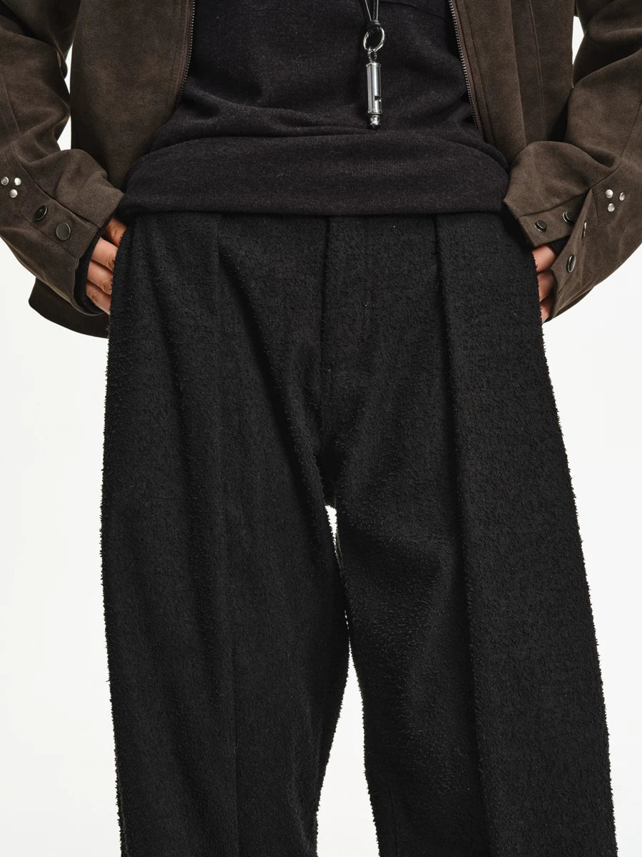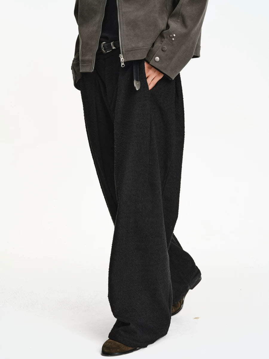 Woven-Texture Wide Leg Pleated Pants